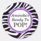 She's Ready to Pop, Zebra Print Baby Shower Classic Round Sticker