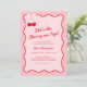 Celebrate your upcoming nuptials with our Personalised Red and Pink Cherry on Top Bridal Shower Invitation, perfect for a cherry on top bridal shower theme. Featuring the phrase "she’s the cherry on top," this invitation is ideal for a cherry bridal shower theme. Combining bridal shower themes cherry, Valentine bridal shower ideas, and a Valentine bridal shower theme, it blends pink bridal shower ideas, a bow bridal shower theme, and a red and pink bridal shower theme with a coquette bridal shower theme twist.