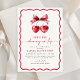 Celebrate the bride-to-be with this "She's the Cherry on Top Bridal Shower" invitation! Featuring sweet watercolor heart shaped cherries tied with a coquette bow and pops of cherry red, this playful design is full of feminine elegance. The scalloped border and whimsical details make it perfect for a fun, stylish celebration. Personalise with your party details and set the tone for a day that’s as sweet as the bride!