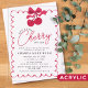 Celebrate the mum-to-be with this adorable "She's the Cherry on Top" acrylic baby shower invitation, featuring a retro pink and red cherry theme with a cute bow and playful script typography. The pink striped background and vintage-inspired design with hand drawn borders, make this the perfect invitation for a fun and feminine baby shower. This editable template allows you to personalise all the event details with ease, ensuring a unique and customised invitation for your celebration. Whether you're hosting a summer baby shower, a cherry-themed baby shower, or a retro-inspired gathering, this design sets the perfect tone for a sweet and memorable event.