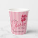 Serve drinks in sweet style with these She’s the Cherry on Top pink baby shower paper cups, designed to coordinate perfectly with the matching cherry baby shower invitation and full party collection. Featuring a playful cherry illustration tied with a bow, soft pink stripes, and a whimsical scalloped frame, these cups add a fun and festive touch to your tablescape.