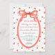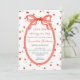 Celebrate your little sweetheart with this cherry-themed baby shower invitation, bursting with playful charm and vintage flair. This whimsical and coquette-style design features hand-painted watercolor cherries scattered across a soft cream background, paired with an elegant, oversized red ribbon bow at the top. A vibrant oval frame, painted in a coordinating cherry red watercolor stroke, draws attention to the shower details, while the script “she’s the cherry on top” adds a fun, feminine touch.