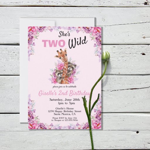 TWO WILD PINK FLORAL SAFARI GIRAFFE 2ND BIRTHDAY Designed by Christina Wedberg