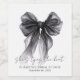 Elegant wine bottle labels for your bridal shower featuring a black coquette bow watercolor, "she's tying the know" showcased in a chic script, and the bride's name and the shower date in simple modern lettering.