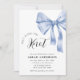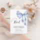 Add a touch of elegance to your celebration with this blue Bow Bridal Shower Invitation Template. Featuring a chic blue bow and soft neutral tones, 'She’s Tying the Knot' bridal shower party,chic and modern bridal shower