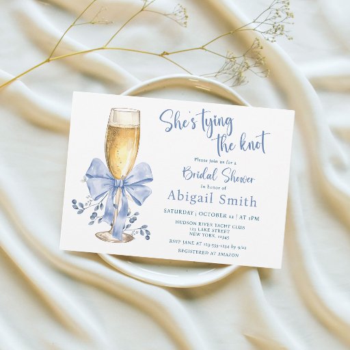 SHE'S TYING THE KNOT BLUE BRIDAL SHOWER INVITATION