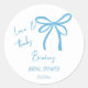 She's tying the knot blue ribbon bow favour classic round sticker