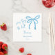 She's tying the knot blue ribbon bow coquette bridal shower printed napkins personalised tableware simple ribbon bow bridal shower table decor