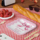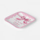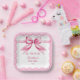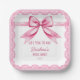 She's tying the knot Pink bow coquette bridal shower printed paper plates template personalised bridal shower tableware decor pink vintage lace border and a retro bow