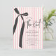 Elevate your Bridal Shower with our modern grey and white striped invitation, designed to impress. Featuring a chic black coquette ribbon bow, this invitation exudes elegance while the preppy pink stripe background adds a touch of sophistication. Perfectly crafted to set the tone for your special day, it invites your guests to celebrate your love story in style.