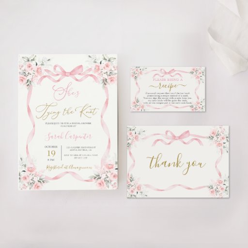 She's Tying the Knot Bridal Shower Invitation, Pink Bow Bridal Shower invitation, elegant bow bridal invite