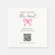 Celebrate the bride-to-be with these elegant bridal shower napkins featuring “She’s Tying the Knot” and a soft pink watercolor bow design. The stylish layout includes a QR code for guests to easily share photos, making it a beautiful and interactive addition to your bridal shower decor.