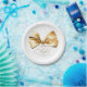 Gold bow bridal shower paper plates "She's Tying The Knot"