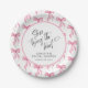 She's Tying the Knot Personalised Bridal Shower Paper Plates in a Pink + White Palette. Elegant hand calligraphy style script with a cute all-over bow pattern. Simply personalise the template with your event title and date. © Kimbellished, LLC