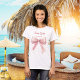 White t-shirt decorated with a pink coloured bow. Personalise and add a name.