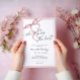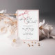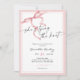 Elegant calligraphy soft pink "she's tying the knot" bridal shower invitation featuring watercolor pink bow design.