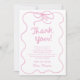 This is a She's Tying The Knot White Pink Whimsical Hand Drawn Bow Bridal Shower Thank You Card!