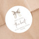 She's Tying The Knot White Bow Bridal Shower Classic Round Sticker