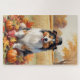 Shetland Sheepdog Autumn Leaves Thanksgiving Art Jigsaw Puzzle