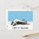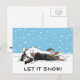 Sheltie Holiday Postcard. “Let it Snow!” Text can be personalised with your own message. Cute drawing of a Shetland Sheepdog rolling in the snow with snowflakes coming down. A perfect Christmas postcard for pet services to customise and send to customers, friends and clients. Great for veterinarians, pet sitters and dog walkers. Visit Jenn’s Doodle World for even more products with this happy dog design, as well as more dog breed Xmas cards and gifts.