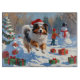 A cheerful Shetland Sheepdog runs playfully through the snowy winter scene, wearing a festive red Christmas hat. This delightful design highlights the breed’s fluffy coat, intelligent eyes, and lively personality while capturing the warmth and joy of the holiday season. A heartwarming winter moment full of festive charm.
