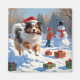A cheerful Shetland Sheepdog runs playfully through the snowy winter scene, wearing a festive red Christmas hat. This delightful design highlights the breed’s fluffy coat, intelligent eyes, and lively personality while capturing the warmth and joy of the holiday season. A heartwarming winter moment full of festive charm.