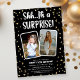 Throwing a Surprise Birthday Party for a friend or family member. This birthday template is perfect for any age and any gender! Design features a black background with modern faux gold confetti, 2 photographs of the birthday girl/boy (one when they were younger and now), with a fun white text template that is easy to customise with your own event details. 'Shh... It's a Surprise!'