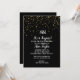 This Shhh It's a Surprise Gold Confetti on Black birthday party invitation is perfect for a classy birthday celebration. The design features faux gold confetti on a black background with elegant white calligraphy.