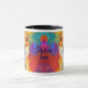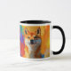 This bright and very colourful mug celebrates the Shiba Inu dog! Two sides of the mug have a beautiful portrait of a Shiba Inu against a brightly splashed background. Predominant colours include red, green, blue, gold, and more. At the centre is dark blue script that says Shiba Inu, but you may change it or even personalise it, if you wish. This mug will get noticed!