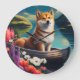 Shiba Inu on a Paddle: A Scenic Adventure Large Clock