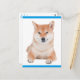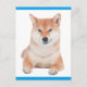 Aww...Who can resist the face of a Shiba Inu puppy dog? This fun postcard features a happy Shiba Inu pup highlighted against a crisp white background with a vibrant blue border.