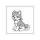 Grayscale cartoon illustration of a sitting shiba inu dog with a happy grin, tongue out. A simple kerchief is tied around its neck.