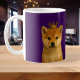 Puppy in Gold Crown Cute mug from Ricaso. An adorable Shiba Inu puppy on a deep purple background. Ideal for animal / dog lovers.