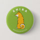 Round button with an illustration of a Shiba, sitting upon a yellowish green background.