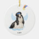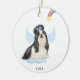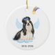 Celebrate your best friend with a custom Shih Tzu angel memorial ornament. This Shih Tzu christmas memorial ornament features a watercolor Shih Tzu dog with angel wings and a rainbow and shooting gold star. Personalise with name front, dates back . This Shih Tzu memorial ornament is a perfect dog remembrance keepsake or pet christmas memorial keepsake. COPYRIGHT © 2022 Judy Burrows, Black Dog Art - All Rights Reserved. Shih Tzu Angel Personalised Pet Dog Memorial Ceramic Ornament