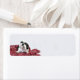 Black and white Shih Tzu in red Christmas garland photo Christmas return address label