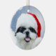 Black and white Shih Tzu in a Santa hat and a winter background dog lovers ceramic Christmas ornament