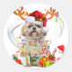 Shih Tzu Christmas Reindeer | Christmas Lights Classic Round Sticker
