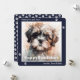 Beautiful Shih Tzu dog holiday card featuring a watercolor illustration of Shih Tzu on the front and a paw prints pattern at the back. Easily personalise this blue holiday card with your text, add your own image, or change the background to any colour as desired.