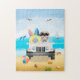 shih tzu Dog Driving on Beach Jigsaw Puzzle