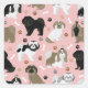 Cute Shih Tzu dogs with black, white, grey, gold and mask coat colours with paw prints and dog bones pattern.