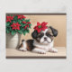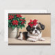Cute Shih Tzu Poinsettias Flowers Postcard