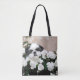 Adorable black and white Shih Tzu face in among the white roses dog lovers tote bag