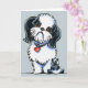 Expressive character illustration of a black and white Shih Tzu with bear toy by Andie, illustrator and creator of Off-Leash Art.