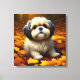 Cute puppy dog playing in yellow fall leaves canvas. Shih Tzu or Lhaso Apso.