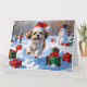 Shih Tzu Running in Snow with Christmas Hat Card