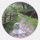 Shih Tzu Sticker Purple Flowers