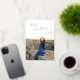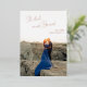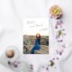Modern wedding save the date card featuring a simple design with your names in an elegant script at the top left and your date, city and state below to the right, over your favourite vertical photo. All text on the front is in real foil. The template includes a sheer overlay along the top to help the text stand out against your photo and may be removed in the design editing tool. The back has a second horizontal picture along with additional details. This minimal, monochromatic design works well for a variety of wedding styles and themes.