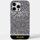 The design features a captivating animal print pattern chraacterised by a blend of textured elements in black and white. The intricate details create a mesmerising optical illusion, enhanced by a sparkling silver border along the bottom. MONOGRAM ADD YOUR NAME