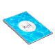 A spiral notebook with a photograph of clear blue pool water, with shimmering reflections.